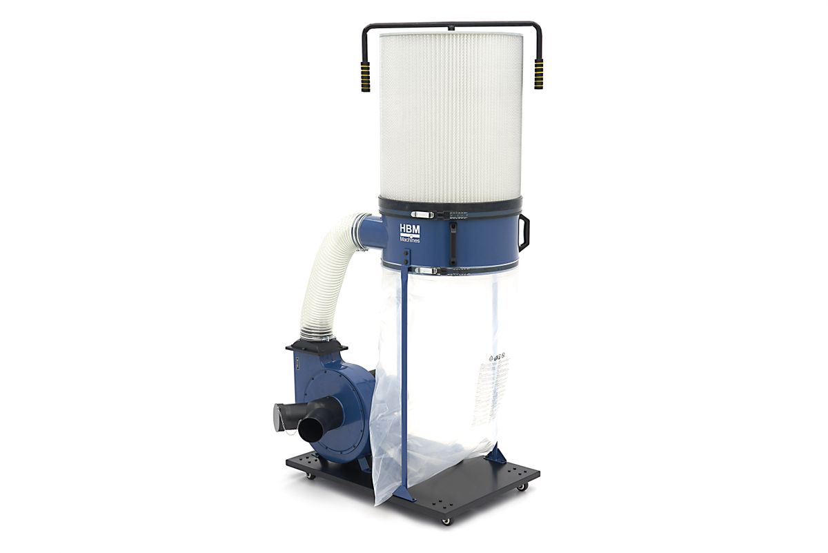 De HBM stofafzuiginstallatie 2500 heeft een afzuigcapaciteit van 2500 m³ per uur en een statische druk van 2600 Pa, wat hem geschikt maakt voor het aansluiten van meerdere machines tegelijk. Het apparaat is voorzien van een potfilter met reinigingshendel, zodat je het filteroppervlak handmatig schoon kunt houden. De stofopvangzak van 205 liter biedt ruimte voor langere werkperiodes zonder onderbreking. Dankzij de meegeleverde Y-adapter, slangen en pakkingen kan het systeem flexibel worden aangesloten. De constructie staat op vier zwenkwielen en werkt op 230V. Alles wat nodig is voor montage en aansluiting is inbegrepen, inclusief bevestigingsmateriaal en steeksleutel.