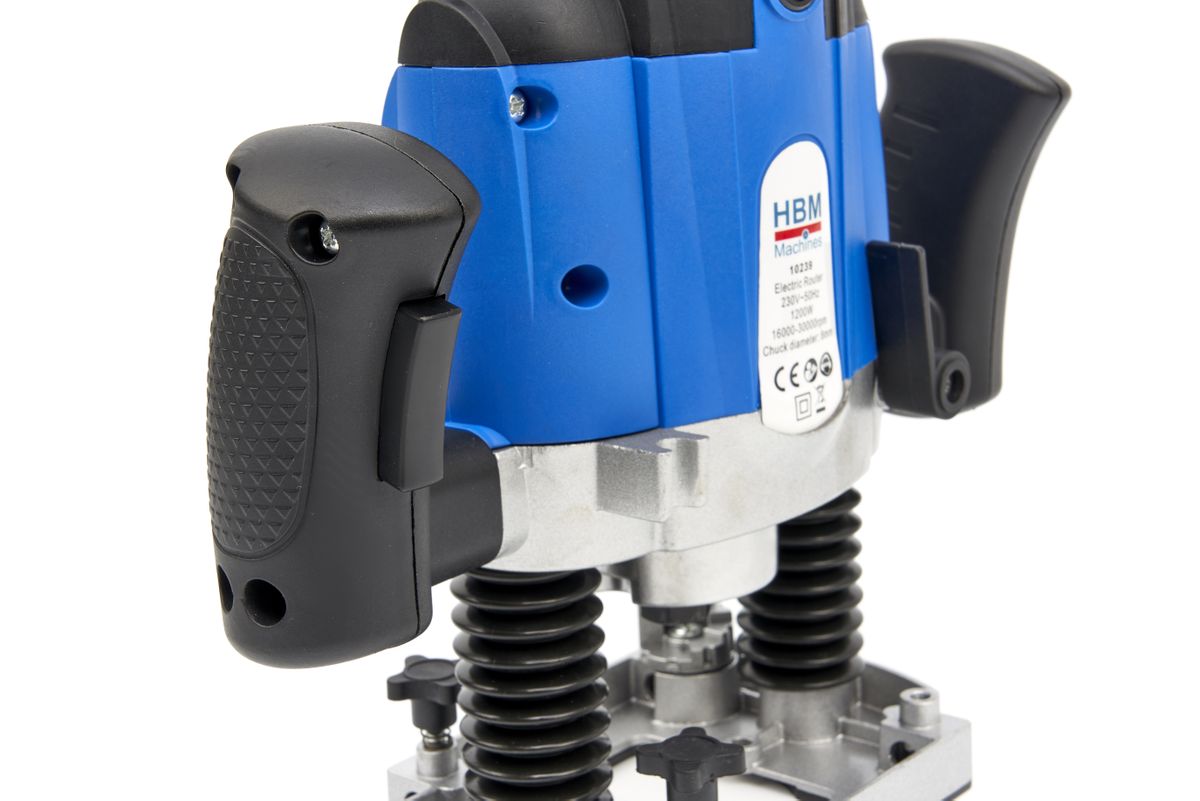 Met de HBM Elektrische Bovenfreesmachine 1200 Watt haal je een gebruiksvriendelijke bovenfrees in huis. Door het ergonomische design met softgrip ligt deze bovenfrees namelijk lekker in de hand. Bovendien is hij door het variabel instelbaar toerental inzetbaar voor verschillende freesbewerkingen van verschillende materialen. Doordat de HBM Elektrische Bovenfreesmachine 1200 Watt is voorzien van een aansluiting tot stofafzuiging kun je ook nog eens stofvrij werken. De meegeleverde kopieerschijf plaats je gemakkelijk met 2 schroefjes.