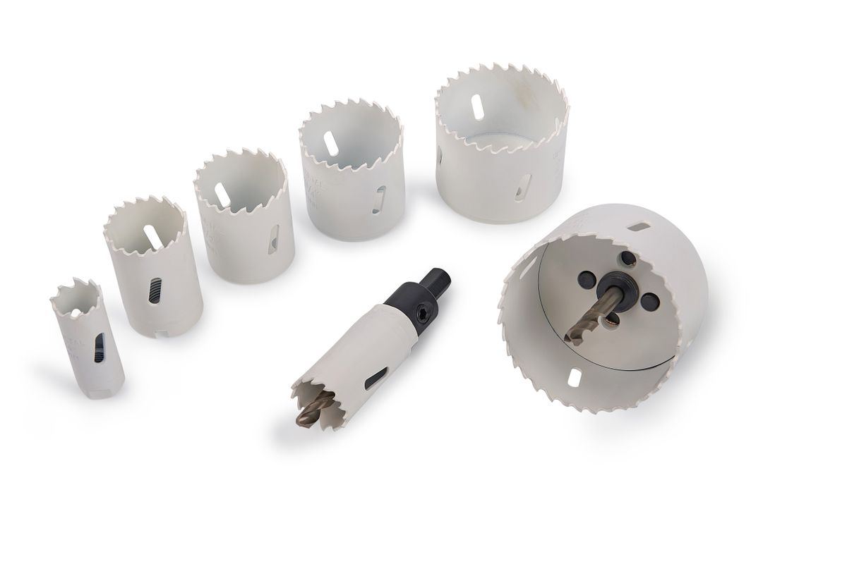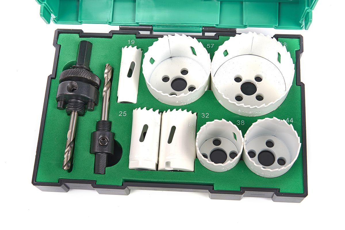 11-delige bi-metaal gatenzaag set (40030032) Box III. Compacte gatzaagmachine: bi-metaal gatzagen met twee schachten en twee HSS-centerboormachines. De 11-delige set bevat 7 verschillende gatenzagen, 2 positioneringsschachten en 2 HSS centreerboren. Het wordt geleverd in een nieuwe opbergdoos van HiKoki. De Box 3.0 (III) is gemakkelijk te transporteren en stapelbaar. Materiaal: gatzagen 6135 met M3-tanden. De BI-Metaal gatzagen hebben een variabele vertanding waardoor een betere en snellere snede wordt bereikt in welk materiaal dan ook: roestvast staal, gietijzer, aluminium, koper, hout, gipsplaat en kunststoffen.Multifunctioneel in het gebruik en vervaardigd uit Bi-metaal.De vertanding is hittebestendig, slijtvast, vervaardigd uit hoog gelegeerd sneldraai staal en opgelast met laser.Het te zagen materiaal wordt gesneden in plaats van versplinterd, een splintervrij resultaat dus.De bodemplaat is extra dik wat de stabiliteit van de zagen zeer ten goede komt, verstevigende accessoires zijn niet nodig.
