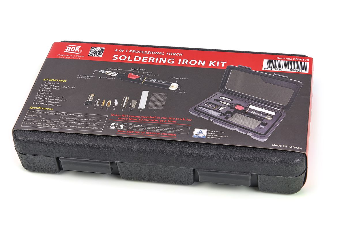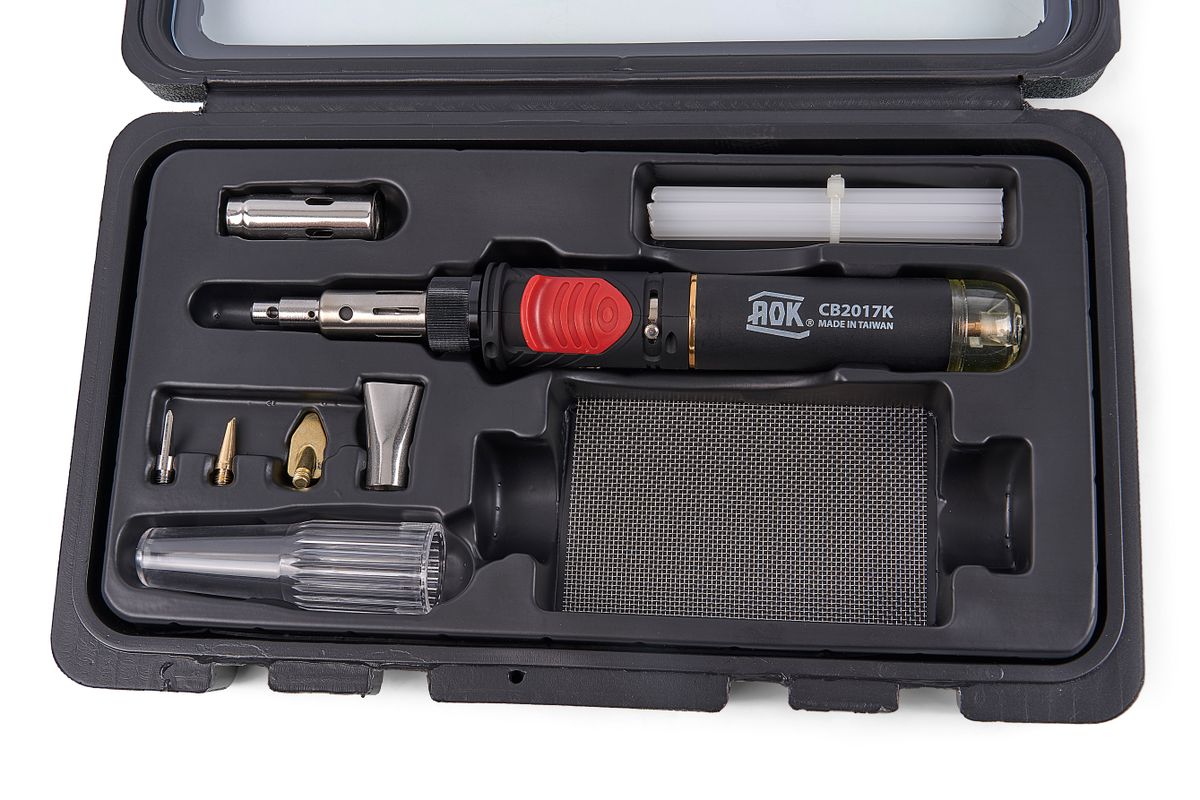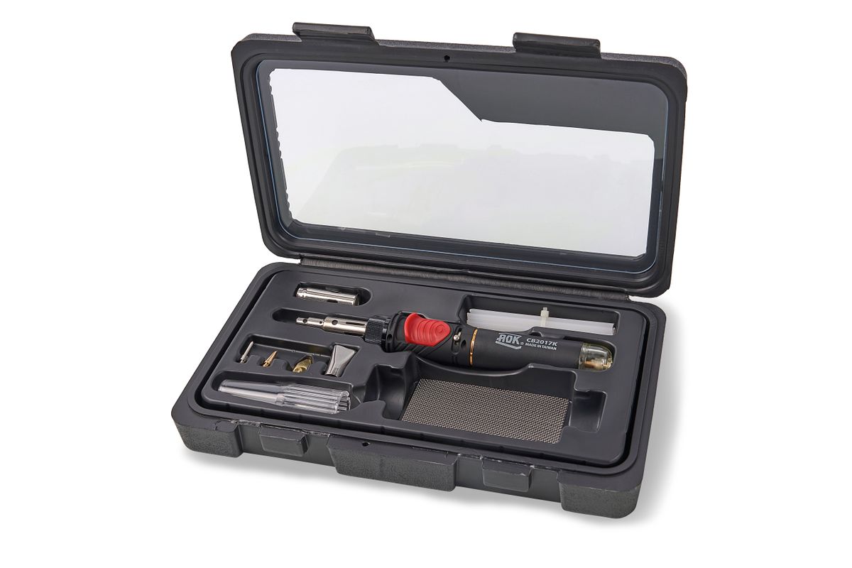 In veel kunststof onderdelen zoals panelen, bumpers en behuizingen krijgt u na lang gebruik scheuren of gaten. In plaats van een nieuw onderdeel aan te schaffen, kunt u nu ook uw kunststof onderdelen zelf repareren. U vult het lasapparaat met butaan, waarna het lasapparaat de kunststof elektrodes smelt. Met het kopstuk last u precies. De set wordt geleverd in een luxe koffer. De koffer bevat behalve het lasapparaat en elektrodes ook verstevigingsgaas, waarmee u extra sterke verbindingen maakt. Het is belangrijk dat u dezelfde soort kunststof elektrode gebruikt als het soort materiaal. Er worden standaard PP (polypropeen) elektrode bijgeleverd. Het kunststof lasapparaat is ideaal voor het herstellen van plastic onderdelen, zoals motorkappen, kunststof meubels en auto dashboarden. Daarnaast is het ook voor vele andere voorwerpen toepasbaar. Het apparaat bespaart u vele kosten! Geschikt voor het lassen van: Acrylonitrilbutadieenstyreen, Polyetheen, Polypropeen, Polystyreen. Dit lasapparaat kun je vullen met gaspatronen 52103.