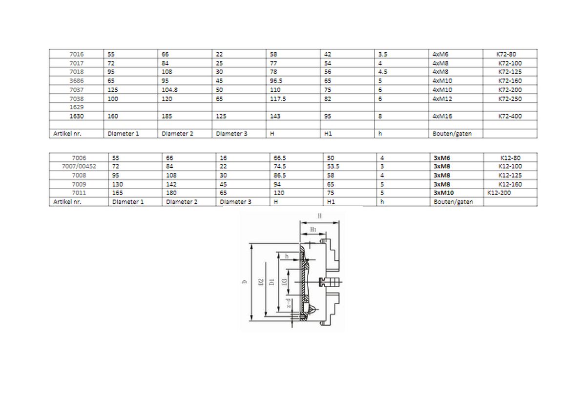 • De HBM Zelfcentrerende 4 Klauwplaten DIN 6350 worden standaard geleverd inclusief
