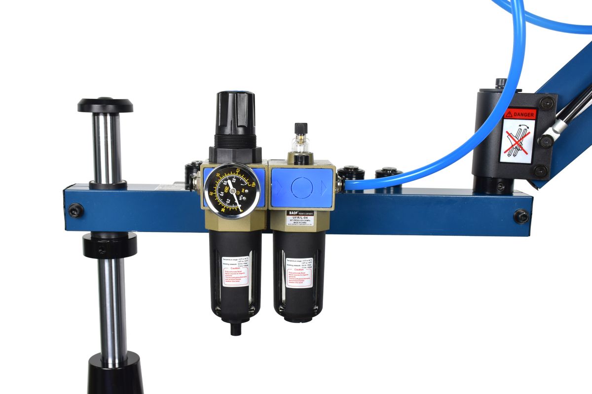 Deze pneumatische taparm is een krachtige tool voor het snel en nauwkeurig tappen van schroefdraad, ideaal voor diverse industriële toepassingen. Met een hoge luchttoevoerdruk en een efficiënt luchtverbruik, biedt de taparm uitstekende prestaties bij zware taken. Het apparaat heeft een vlotte bewerking met een breed tapbereik en een hoge spindelsnelheid. Dankzij de flexibele werkafstand en de instelbare drukregelaar kunt u hem naar wens afstemmen voor optimale resultaten. De taparm is licht van gewicht en wordt geleverd met snelkoppelingstapadapters, wat de aansluiting eenvoudig maakt.