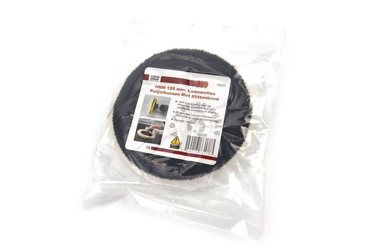 100% lamswollen kussen met klittenband achterzijde voor een gemakkelijk bevestiging en afname. Te gebruiken met een klittenband steunschijf op schuur-/polijstmachines.