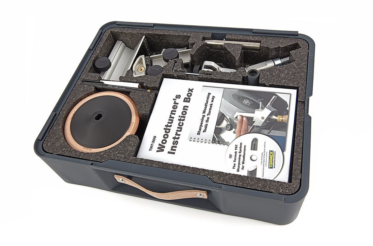 TNT-808 Kit voor Houtdraaier – Deze kit bevat alles wat je nodig hebt om al je draaigereedschap te vormen en te slijpen, inclusief twee gepatenteerde mallen, die voor drie in te zetten zijn, een lederen hoonwiel, een serieuze instructie en de gewaardeerde Turning Tool Setter. Dit alles wordt geleverd in de Tormek-koffer met opberglade om al je mallen veilig op te bergen. De Tormek-koffer houdt je mallen en accessoires georganiseerd en is makkelijk te dragen dankzij de premium lederen handgreep. De behuizing is gemaakt van hoogwaardige materialen met een verschuifbaar deksel dat alles op zijn plaats houdt. Meegeleverde mallen en accessoires: Turning Tool Setter. Gutsen mal. Multifunctionele mal – bestaat uit een behuizing en twee uitwisselbare houders. Gereedschapssteun. Geprofileerd lederen hoornwiel. Instructieboek met DVD. Machine hoes.