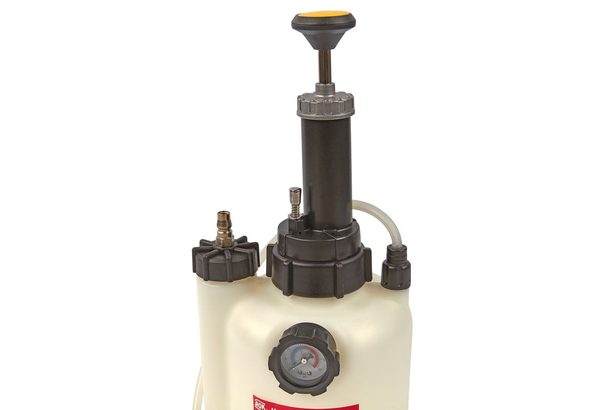 Deze AOK Professionele Handmatige Koppeling en Remontluchter 3 Liter is ideaal voor het gemakkelijk en veilig ontluchten van het rem-, koppelings- en stuursysteem van je voertuig met een 45 mm hydraulische oliereservoirdop. Het apparaat is gemaakt van duurzaam, corrosiebestendig kunststof en is uiterst eenvoudig te reinigen. Het heeft een inhoud van 3 Liter. De tank van deze pneumatische remontluchter kan 3 liter hydraulische olie bevatten en spoelt het hele systeem in één keer, zonder het risico op het uitdrogen van de tank. Bovendien kan het remsysteem dankzij het eenvoudige gebruik door één persoon worden ontlucht, waardoor dit gereedschap perfect is voor particuliere gebruikers.