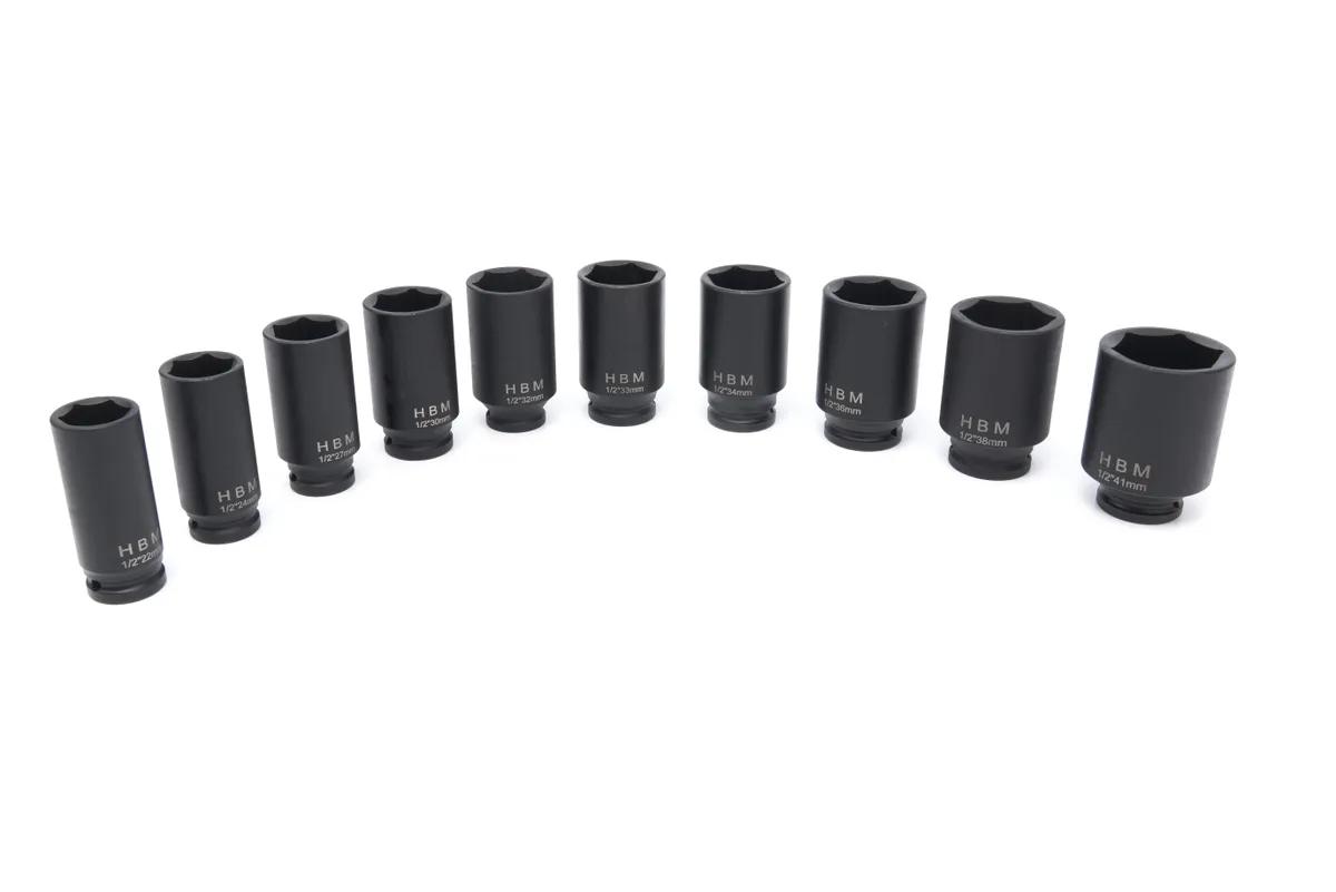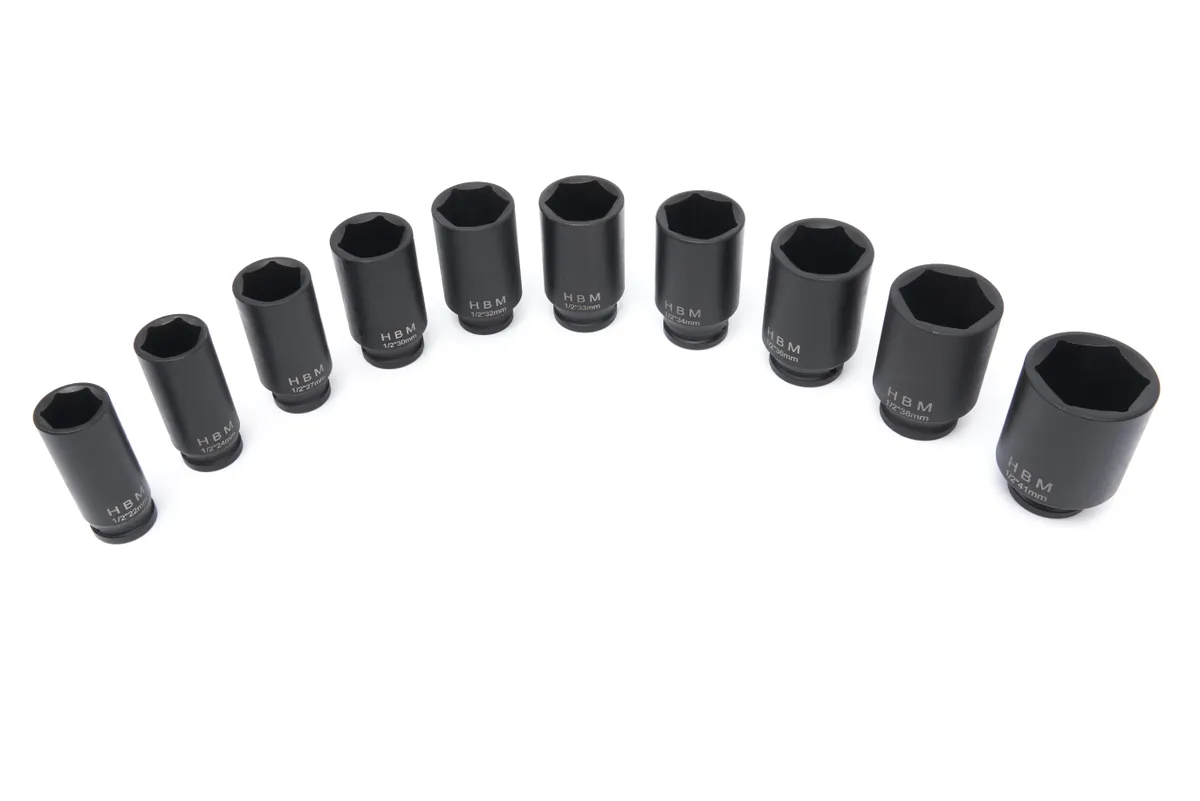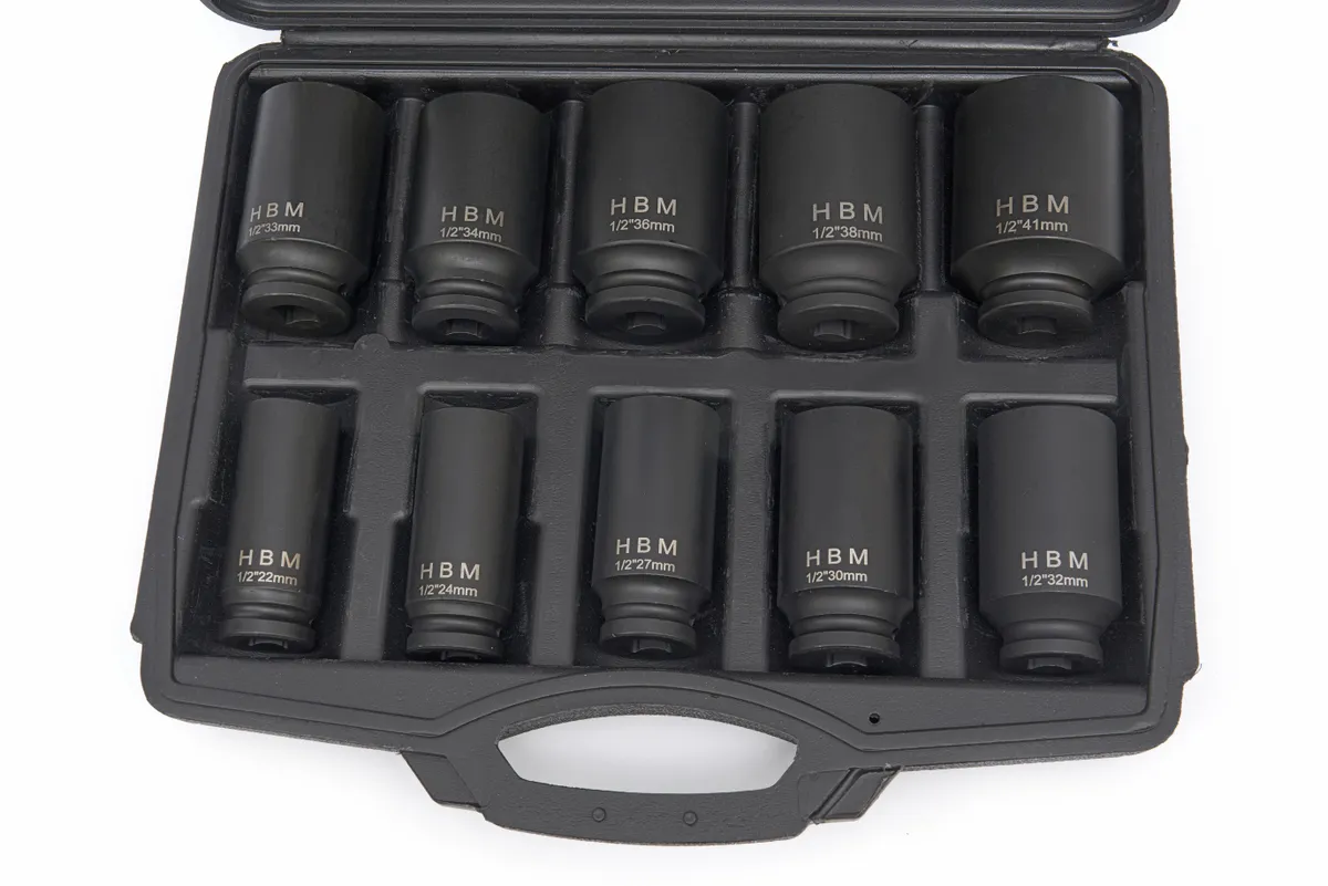 HBM 1/2″ krachtdoppenset grote maten is perfect voor zwaar sleutelwerk waar precisie en kracht samenkomen. De set bevat 10 sterke doppen met een 1/2″ aansluiting, geschikt voor gebruik met slagmoersleutels en momentsleutels. Dankzij de veelgebruikte metrische maten is de set toepasbaar in diverse werkomgevingen, zoals de industrie, werkplaatsen en bij onderhoud aan voertuigen. De doppen zijn vervaardigd uit slijtvast, gehard staal en leveren uitstekende prestaties onder zware belasting. Een praktische en betrouwbare keuze voor elke vakmens.