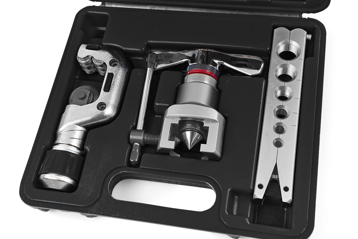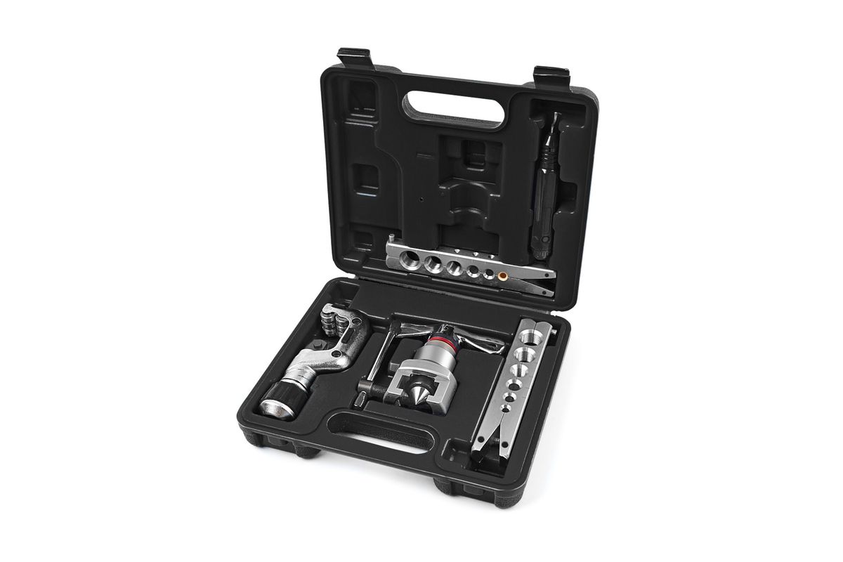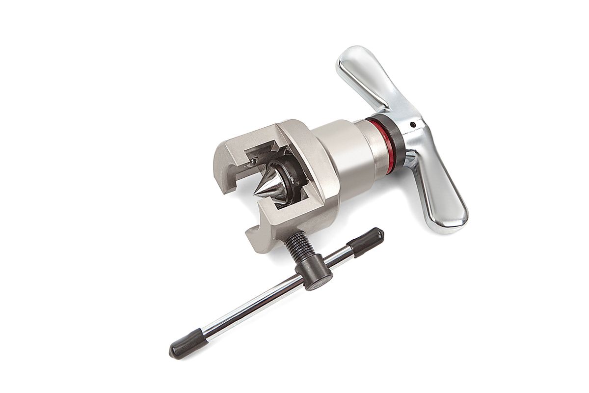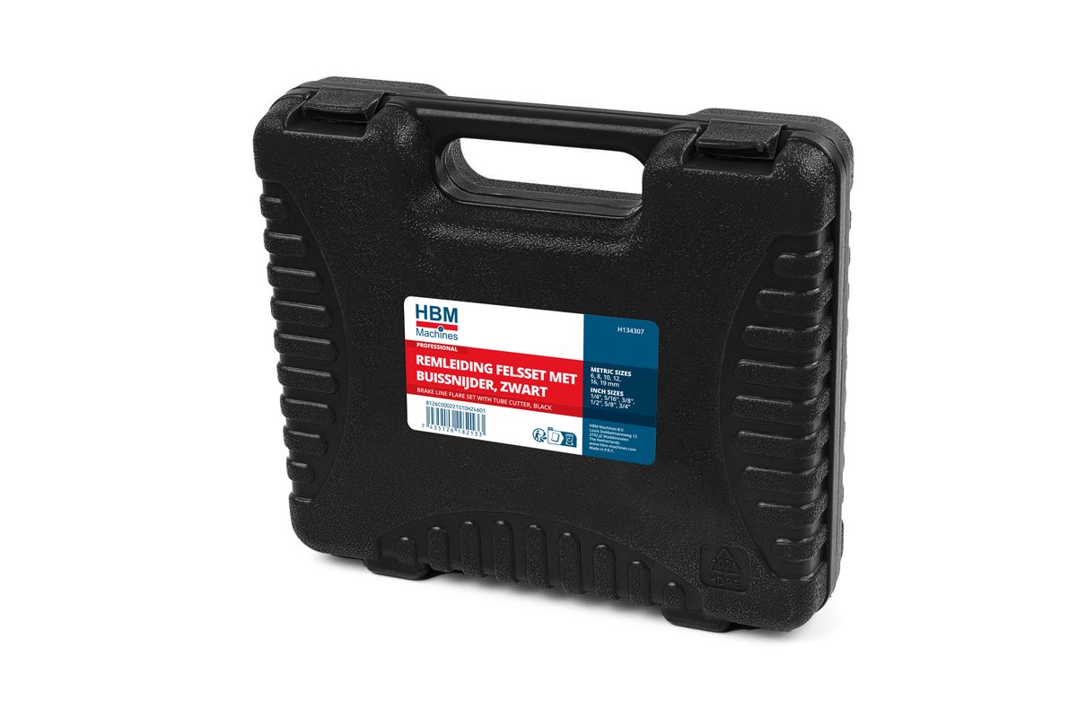 De HBM remleiding felsset met buissnijder is ideaal voor het maken van felskragen op koperen en zachtstalen leidingen met een wanddikte tot 1 mm. De set bevat een pijpsnijder, remleidinghouders (metrisch en inch), een afbraammes, en wordt geleverd in een luxe opbergkoffer.