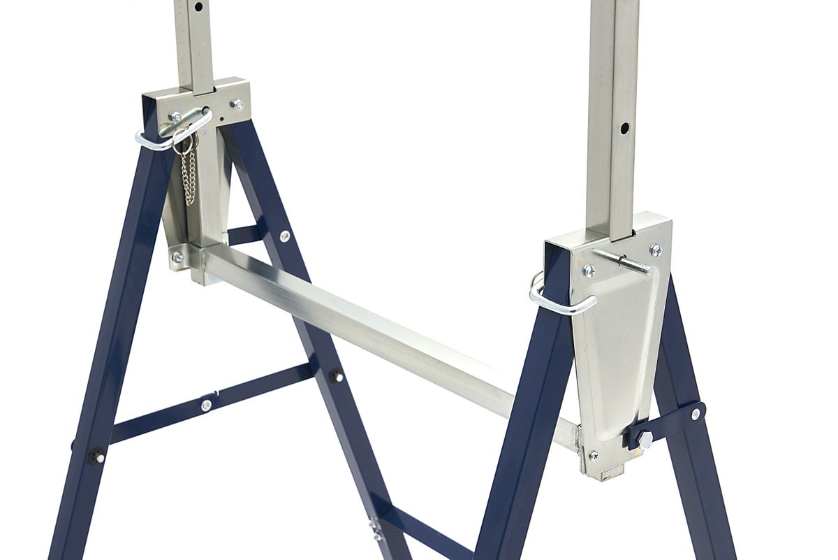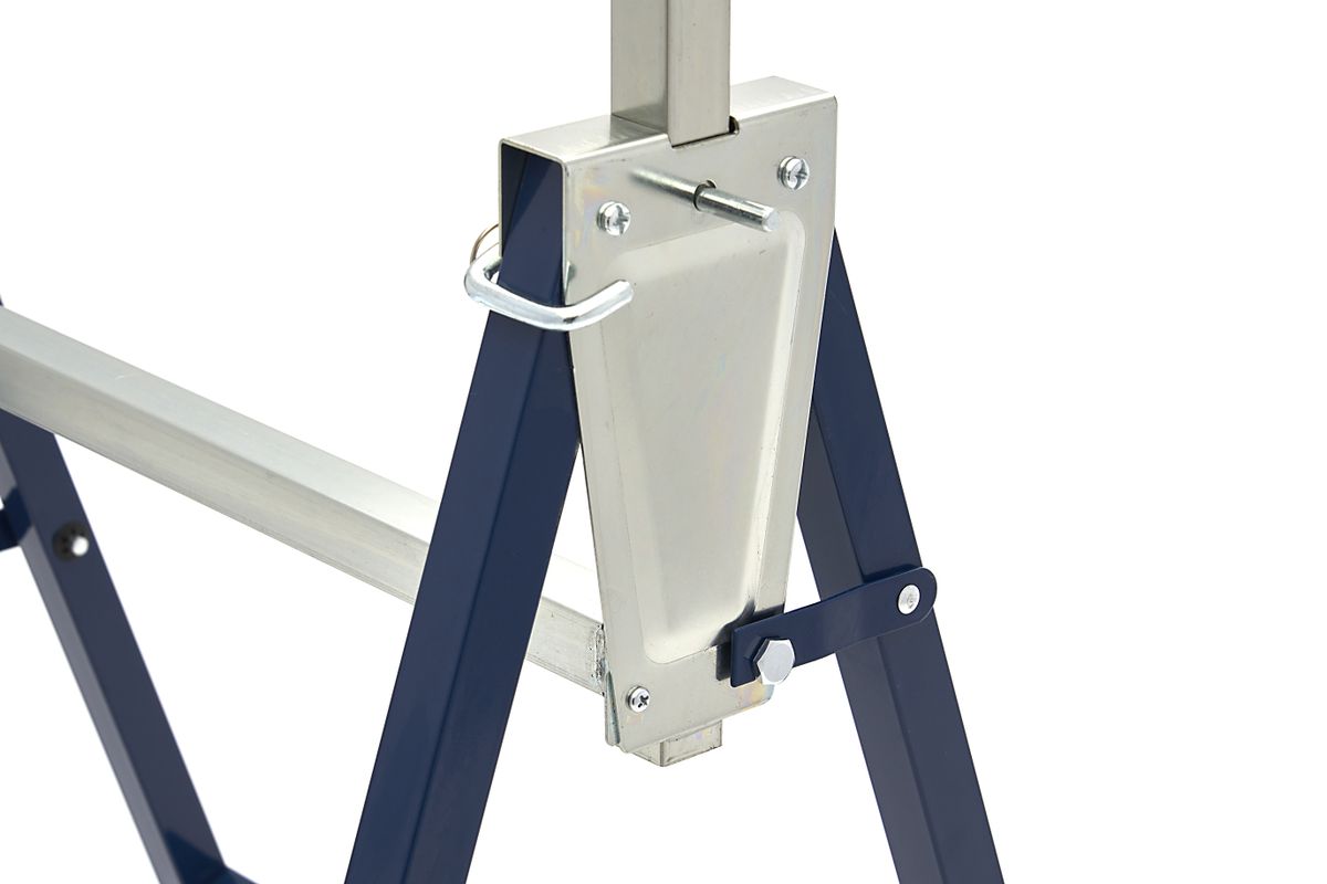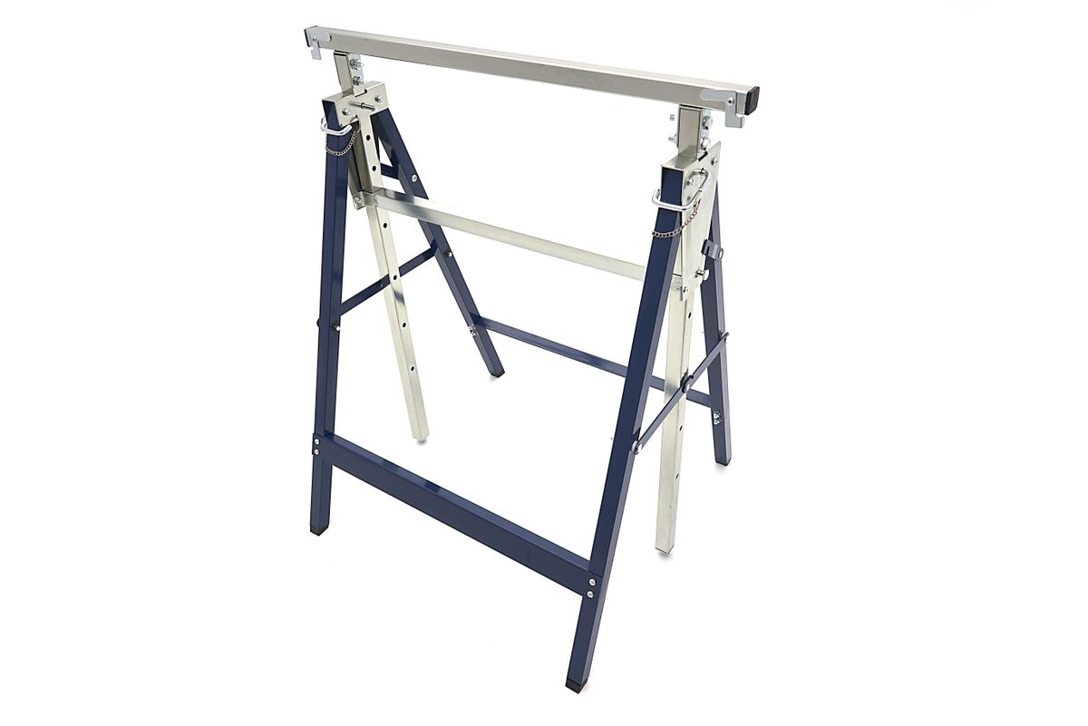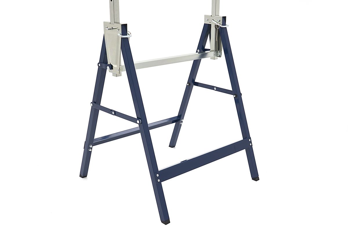 Deze HBM in hoogte verstelbare schraag is altijd handig om in de buurt te hebben. De schraag is opgebouwd uit twee sets inklapbare poten, welke middels een dwarsligger met elkaar worden verbonden. Deze verbinding geeft tevens meer stabiliteit aan de schraag. De verstelbare geleiders worden op zeven verschillende hoogtes vergrendeld. Ingeklapt berg je de schraag snel op, hangend aan de muur of tegen de muur onder de werkbank. Overige informatie De schraag is een handige hulp bij onder andere zaagwerkzaamheden. Heb je twee van deze handige schragen? Dan kun je er met een paar planken snel een draag- en verplaatsbare werkbank van maken. Makkelijk voor werken op locatie of handig om bijvoorbeeld snel een behangtafel bij de hand te hebben. Met een paar stevige planken maak je er een kleine steiger van. Ideaal bij bijvoorbeeld schilder- of stucwerkzaamheden. Een mooi tafelkleed erover en je hebt een extra tafel voor het tuinfeest. Er zijn tal van toepassingen te bedenken voor een paar van deze schragen.