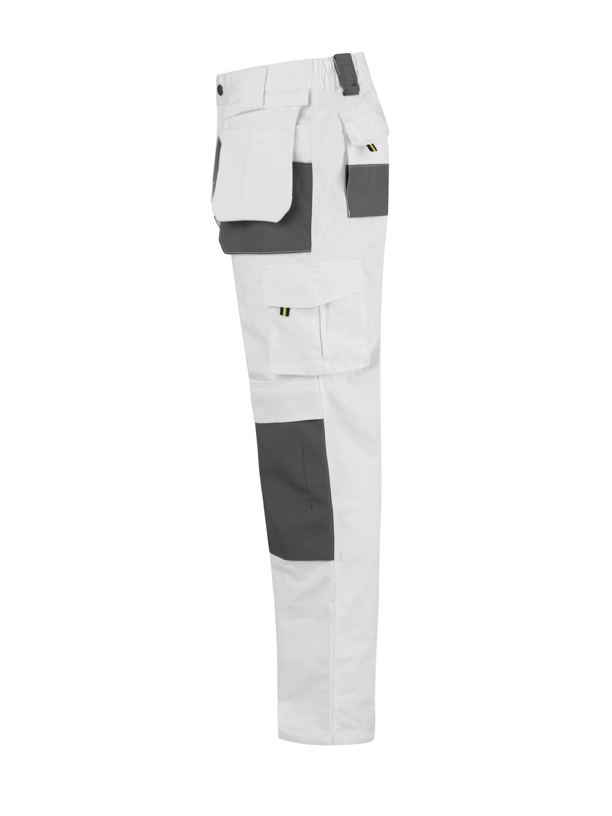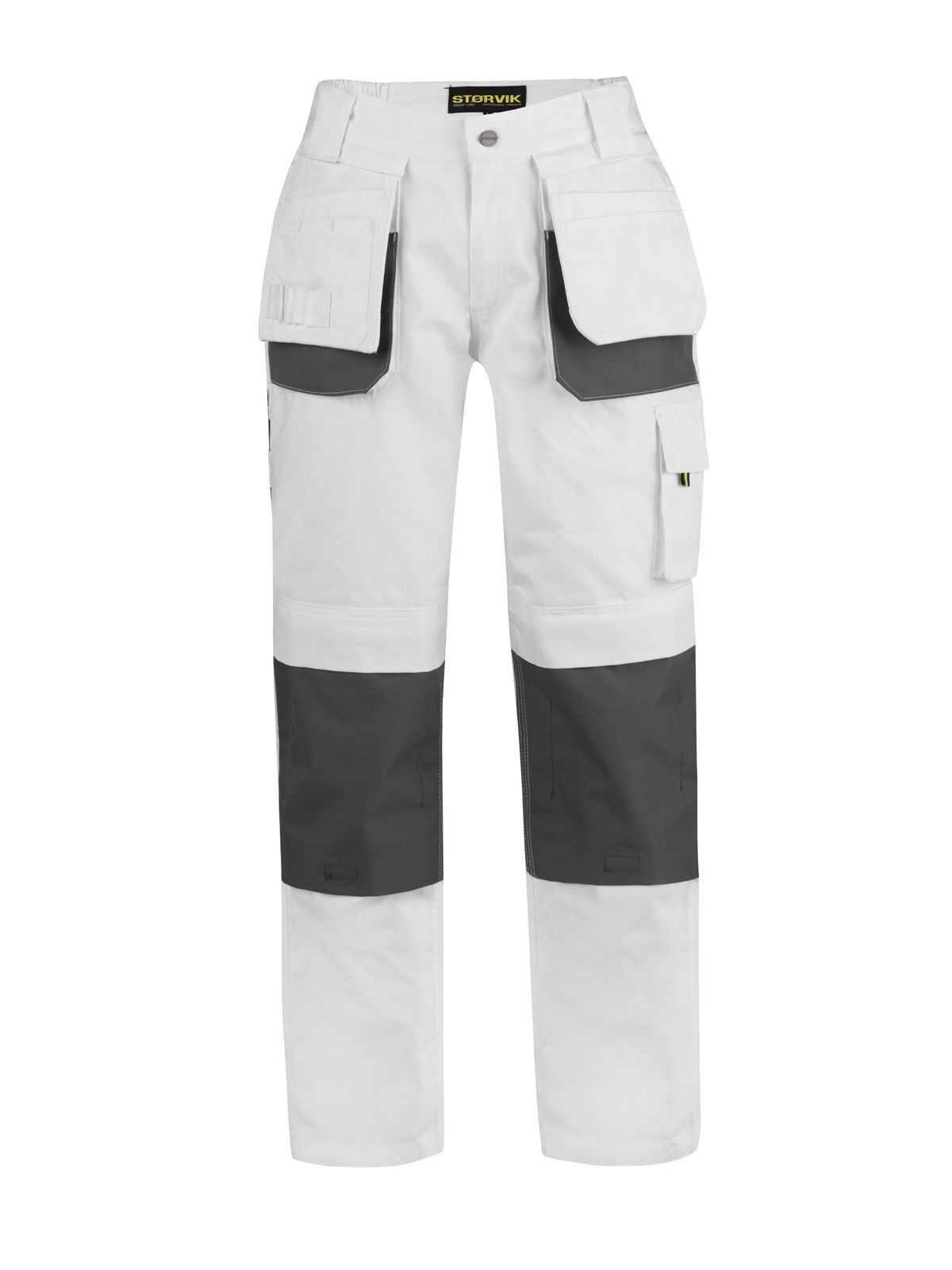 Zoek je een stevige werkbroek om in te werken op de bouw, in de tuin of bij het klussen rondom het huis. Dan is de David Werkbroek van STØRVIK de ideale oplossing. De stof is namelijk slijtvast (65% polyester, 35% katoen) en het gewicht van de broek is 270 gram /m2. Door een uitlegbare dubbele zoom maak je de David 3cm langer. Verder is de werkbroek elastisch in de taille, heeft drievoudig gestikte naden en heeft een hamerlus en grote riemlussen voor een gereedschapsriem, waarvan twee aan de achterkant met klittenband te openen zijn. De broek heeft ook verschillende zakken, namelijk: twee open en twee met klittenband afsluitbare heupzakken, twee klittenband kontzakken en een duimstokzak. En op beide knieën zitten verstevigde kniezakken voor kniekussens en de broek heeft ook twee afritsbare workerzakken met open zakken en pennenzakken- en houders