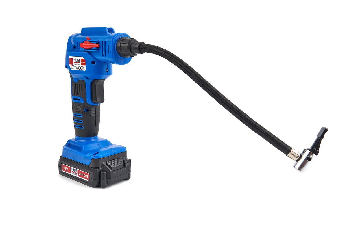 Deze professionele draagbare luchtcompressor van HBM is goed te gebruiken voor tal van toepassingen. Gebruik de compressor bijvoorbeeld voor het oppompen van autobanden, fietsbanden, luchtbedden en ballen. Met de juiste bandenspanning zorg je ervoor dat je minder brandstof hoeft te gebruiken en de banden minder snel slijten. De 18 Volt compressor maakt gebruik van een krachtige oplaadbare Lithium-ion accu. Hierdoor werkt de compressor snel en eenvoudig en biedt het apparaat een uitstekende luchtdruk. Over de HBM 18 Volt Compressor op Accu met Toebehoren Deze topkwaliteit compressor wordt geleverd met diverse toebehoren, zoals een universele adapter, een ventiel, een digitale manometer en een luchtslang van 30 cm. Hiermee kan de compressor voor tal van werkzaamheden en toepassingen gebruikt worden. De compressor wordt daarnaast geleverd in een luxe en stevige draagkoffer. Hiermee kun je alle losse onderdelen altijd eenvoudig opbergen en neem je het apparaat eenvoudig overal mee naartoe.
