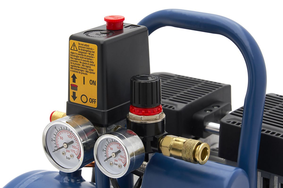 De HBM 6 Liter Low Noise Compressor is een compacte en stille krachtpatser voor in de werkplaats of thuisomgeving. Dankzij de olievrije pomptechniek is deze compressor onderhoudsarm en direct inzetbaar voor uiteenlopende toepassingen, zoals het oppompen van banden, het bedienen van luchtgereedschap of lichte spuitwerkzaamheden. De luchttank van 6 liter zorgt voor een stabiele luchttoevoer. De geïntegreerde drukmeters, regelaar en snelkoppeling maken het instellen en aflezen eenvoudig en precies. De ingebouwde thermische beveiliging en automatische drukregeling verhogen de gebruiksveiligheid. Dankzij het lage geluidsniveau van slechts 78 dB(A) is de compressor bij uitstek geschikt voor gebruik in geluidsgevoelige omgevingen. Het lichte gewicht en de ergonomische handgreep zorgen ervoor dat je het toestel eenvoudig kunt verplaatsen.