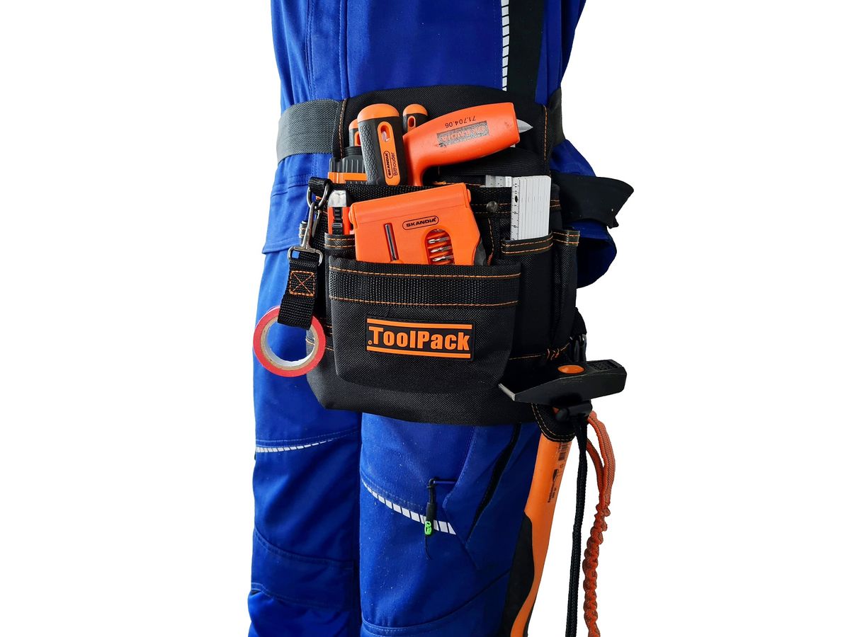 Ontdek de ToolPack gereedschapsgordel met elastische gereedschapskoord, ontworpen voor ToolPack tool organizers. Deze heuptas (20x10x30cm) met verstelbare draagband is een handige metgezel voor professionals en doe-het-zelvers. Het grote hoofdvak van de tas heeft 2 handige insteekvakken voor essentiële gereedschappen. Aan de voorzijde vind je 3 extra insteekvakken, 2 gesloten vakken en een ruim spijkervak voor nog meer opbergmogelijkheden. Met het slimme elastische gereedschapskoord kun je je hamer veilig aan de gereedschapshouder bevestigen, waardoor het risico op vallen wordt geminimaliseerd. Met de verstelbare 135×4,5 cm polyester tailleband met ABS snelontgrendelingsgesp past deze gordel bij de meeste lichaamstypes.