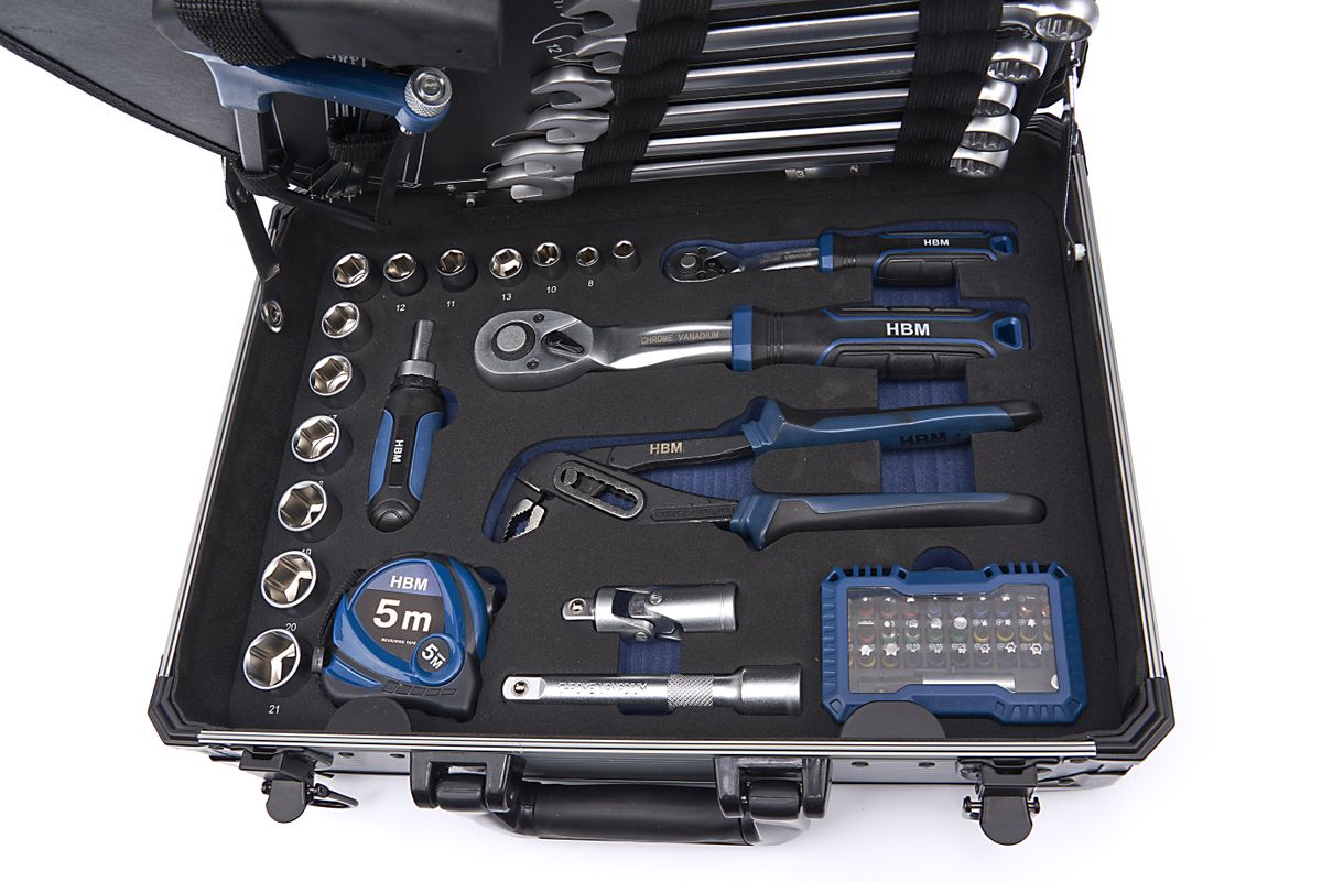 Of je nu een kast monteert, een fiets repareert of een klus buitenshuis uitvoert, met de HBM 111-delige gereedschapskoffer ben je op alles voorbereid. Deze goed gevulde koffer bevat een slimme selectie handgereedschappen, waaronder schroevendraaiers, steeksleutels, tangen, een hamer en meer. Elk stuk gereedschap heeft zijn vaste plek, zodat je overzicht houdt en direct vindt wat je nodig hebt. De stevige koffer is gemaakt om tegen een stootje te kunnen en beschermt je gereedschap optimaal. Dankzij het compacte en draagbare ontwerp neem je de set eenvoudig mee naar elke werkplek, in de auto of gewoon in de schuur. Alles blijft netjes geordend en klaar voor gebruik. Deze koffer is ideaal voor zowel vakmensen als fanatieke doe-het-zelvers die waarde hechten aan efficiëntie, kwaliteit en gemak. Waar je ook aan de slag gaat: met HBM heb je altijd het juiste gereedschap binnen handbereik.