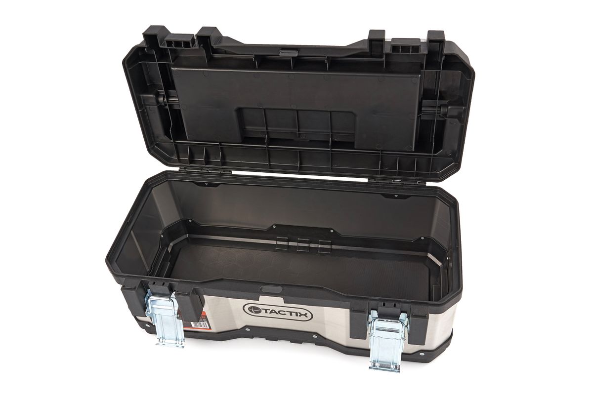Dankzij deze professionele, robuuste en uiterst overzichtelijke gereedschapskoffer vormt de inrichting van je werkplaats geen uitdaging meer. De koffer beschikt over een stevige buitenkant zodat bij een stoot of val je tools niet zomaar beschadigd raken. Over de Tactix Professionele RVS Gereedschapskoffer Met Uitneembare Opbergbakjes De bakjes zitten in het deksel van de koffer en bieden voldoende ruimte om kleinere tools en materialen op te bergen. Denk maar aan schroevendraaiers bouten en vijzen. Het doorzichtige deksel van dit deel geeft je altijd voldoende zicht op de inhoud. Ook biedt het onderste gedeelte van de koffer meer van genoeg plaats voor iets grotere materialen en gereedschap zoals hamers, schroevendraaiers en waterpassen. Kortom, deze koffer is de perfecte uitbreiding voor professionele loodgieters, elektriciens, monteurs en veel andere specialisten die hun materiaal graag veilig en efficiënt opbergen.