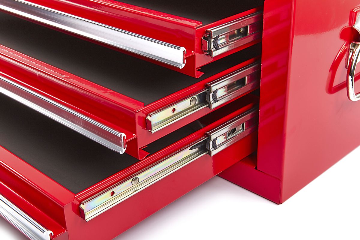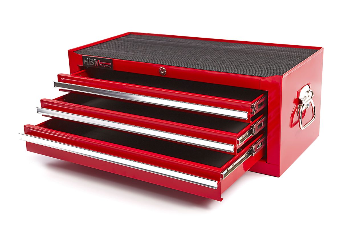 De HBM B gereedschap opzetkast ROOD is een handige opzetkast in de serie B van HBM. De kast is stapelbaar, maar je kan hem natuurlijk ook afzonderlijk neerzetten. Deze opzetkast heeft drie lades en is voorzien van een kras- en slagvaste poedercoating. Alle lades kunnen afzonderlijk volledig geopend worden en met één centraal slot sluit je deze opzetkast voor gereedschappen in z’n geheel af. De kast is compatibel met de andere kasten en onderdelen uit de B serie van HBM. Over de HBM B gereedschap opzetkast ROOD Deze opzetkast zorgt ervoor dat al je gereedschappen overzichtelijk kunnen worden opgeborgen. De lades hebben soepele geleiders, zodat je elke lade afzonderlijk voor 100 procent kunt openen. Wil je de set compleet maken? Bekijk dan ook alle andere opzetkasten en meubels uit deze B serie van HBM. De serie is ook verkrijgbaar in de kleur zwart.
