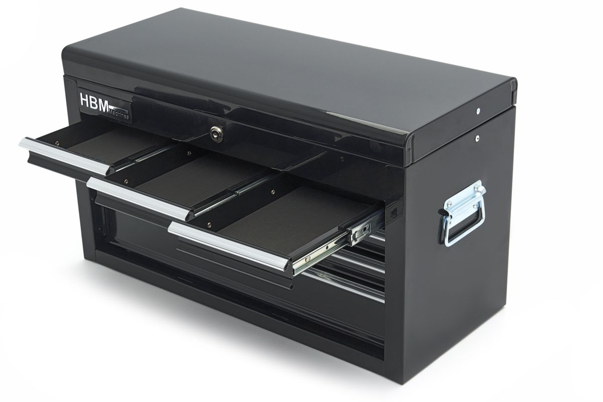 De HBM B Gereedschap Opzetkast is een robuuste en duurzame kast van HBM. De kast heeft een kras- en slagvaste poedercoating, waardoor de kast jarenlang meegaat. De kast is voorzien van een centraal slot en twee stevige handvaten. Daarnaast is de kast stapelbaar en kunnen alle laden 100% geopend worden. Met de HBM Opzetkast heb je altijd een goed georganiseerde werkplek. Een opzetkast met meerdere lades is een handig en veelzijdig opbergsysteem. Het biedt voldoende ruimte om verschillende items netjes te organiseren en binnen handbereik te houden. Met meerdere lades kunnen gebruikers hun spullen gemakkelijk categoriseren en snel vinden wat ze nodig hebben. Het compacte ontwerp maakt het geschikt voor diverse ruimtes, van kantoren tot werkplaatsen en thuisgebruik.