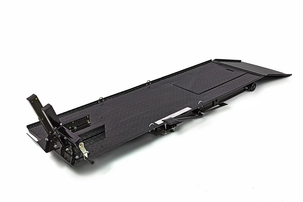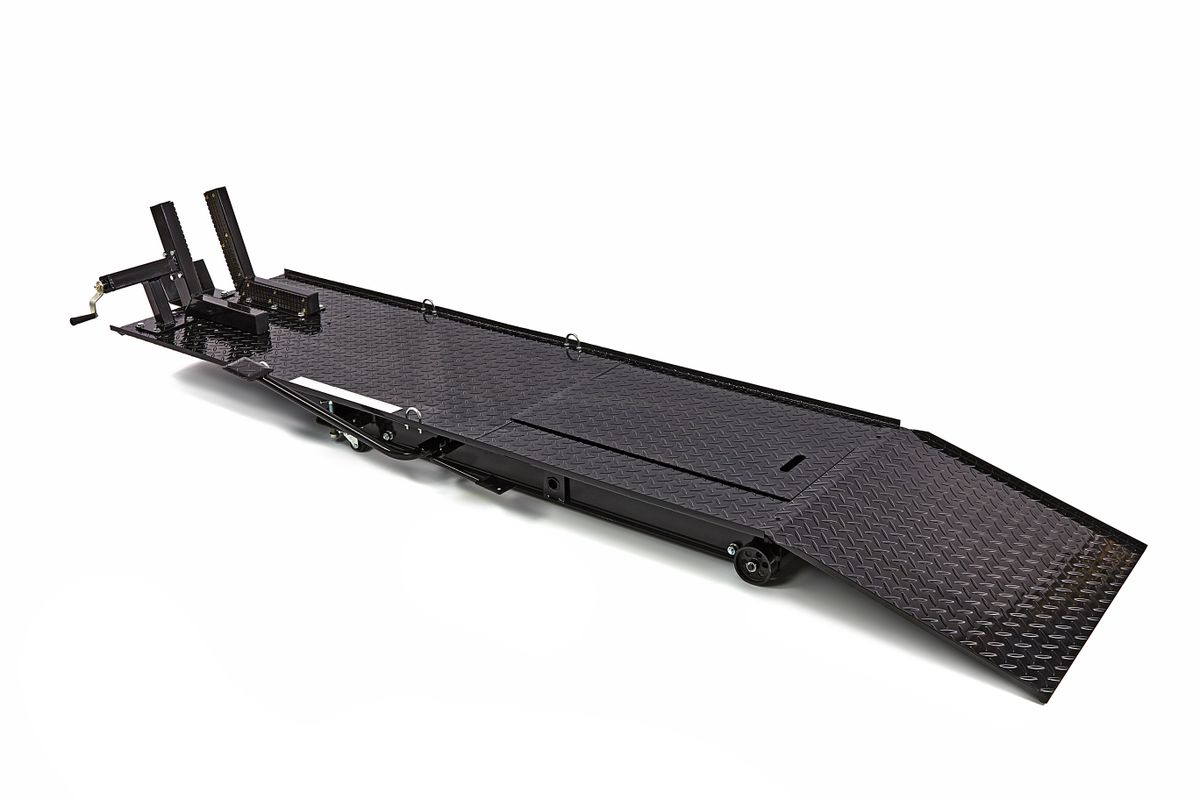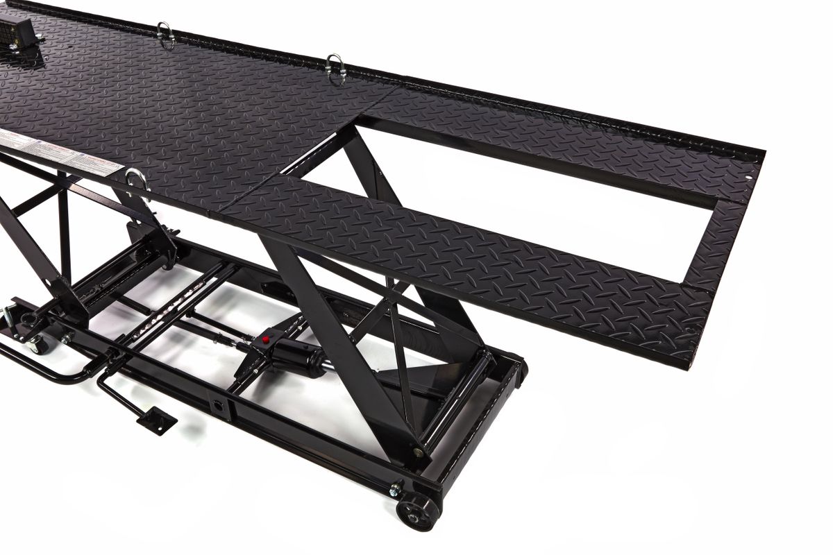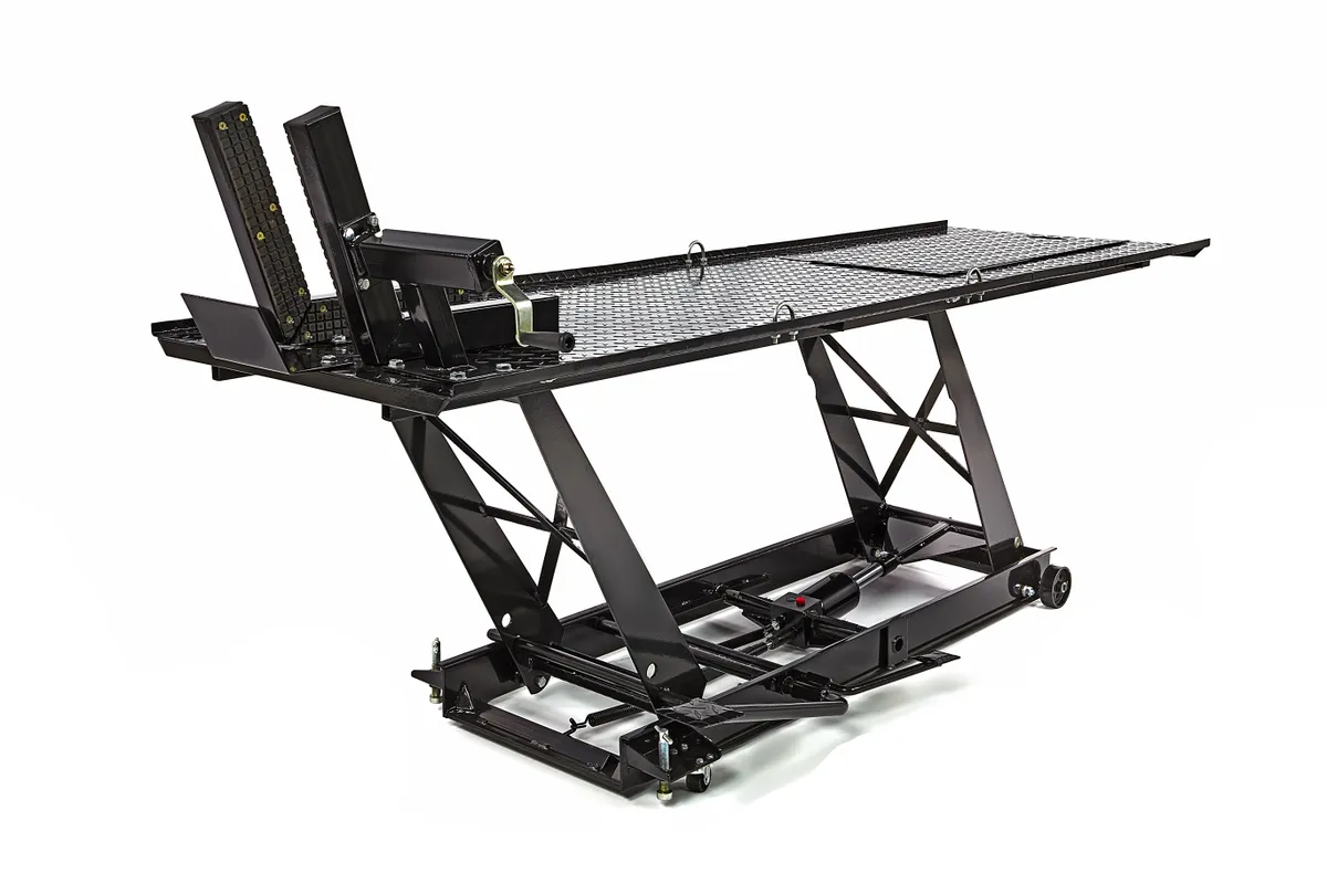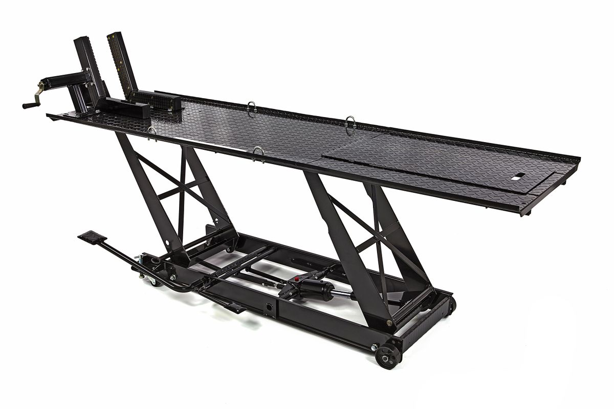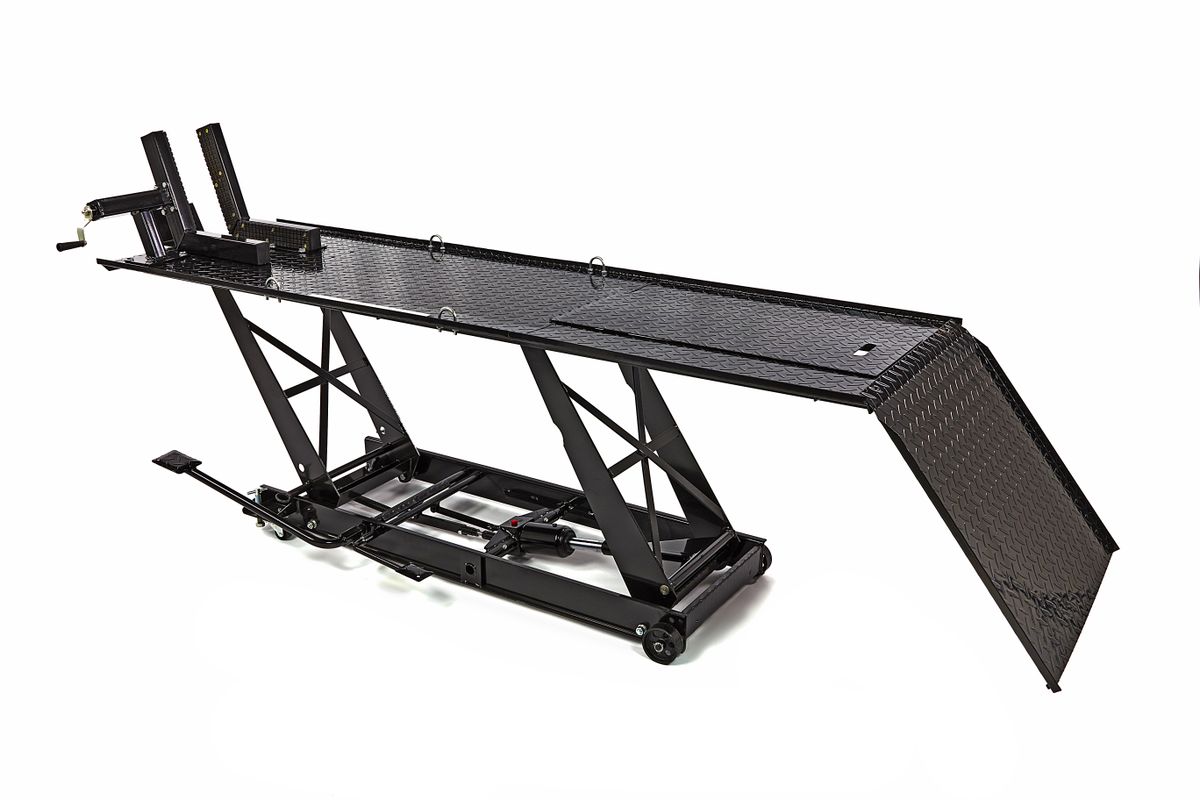 Onderhoud, reparatie of je motor een schoonmaakbeurt geven? Met de HBM 450 kg motorheftafel hoef je nooit meer door de knieën. Rij je motor op de hefbrug en zet deze door middel van voetbediening op de juiste hoogte. Zo kun je overal bij en heb je goed zicht op je werkzaamheden. Een ergonomisch verantwoorde houding voorkomt bovendien lichamelijke klachten. Deze motorheftafel is niet alleen ideaal voor motorbezitters. Deze professionele werkbrug leent zich namelijk ook voor scooters en bromfietsen. Naast een voorwielklem beschikt de heftafel over een doorrijdstop en valbeveiliging. Aan de zijkant bevinden zich voetpedalen om de brug omhoog te heffen en in kleine stapjes gecontroleerd te laten dalen. Het plateau is gemaakt van traanplaat. Beschikt over een afneembare oprijplaat. Dit is handig als je aan de achterkant of het achterwiel werkt.