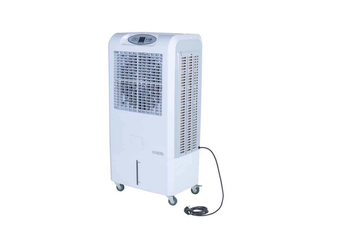 Zoek je een compacte luchtkoeler die middelgrote ruimtes kan vullen, dan is de Master CCX4.0 ideaal. Deze luchtkoeler is makkelijk te verplaatsen door de wielen en het relatief lage gewicht. Ruimtes tot 80 vierkante meter kun je koelen. Naast verfrissing zorgt de deze Master ook voor een schonere lucht en kan deze ook luchtbevochtigen. Vul hiervoor de tank van 50 liter met water zodat je er nog comfortabeler bijzit.