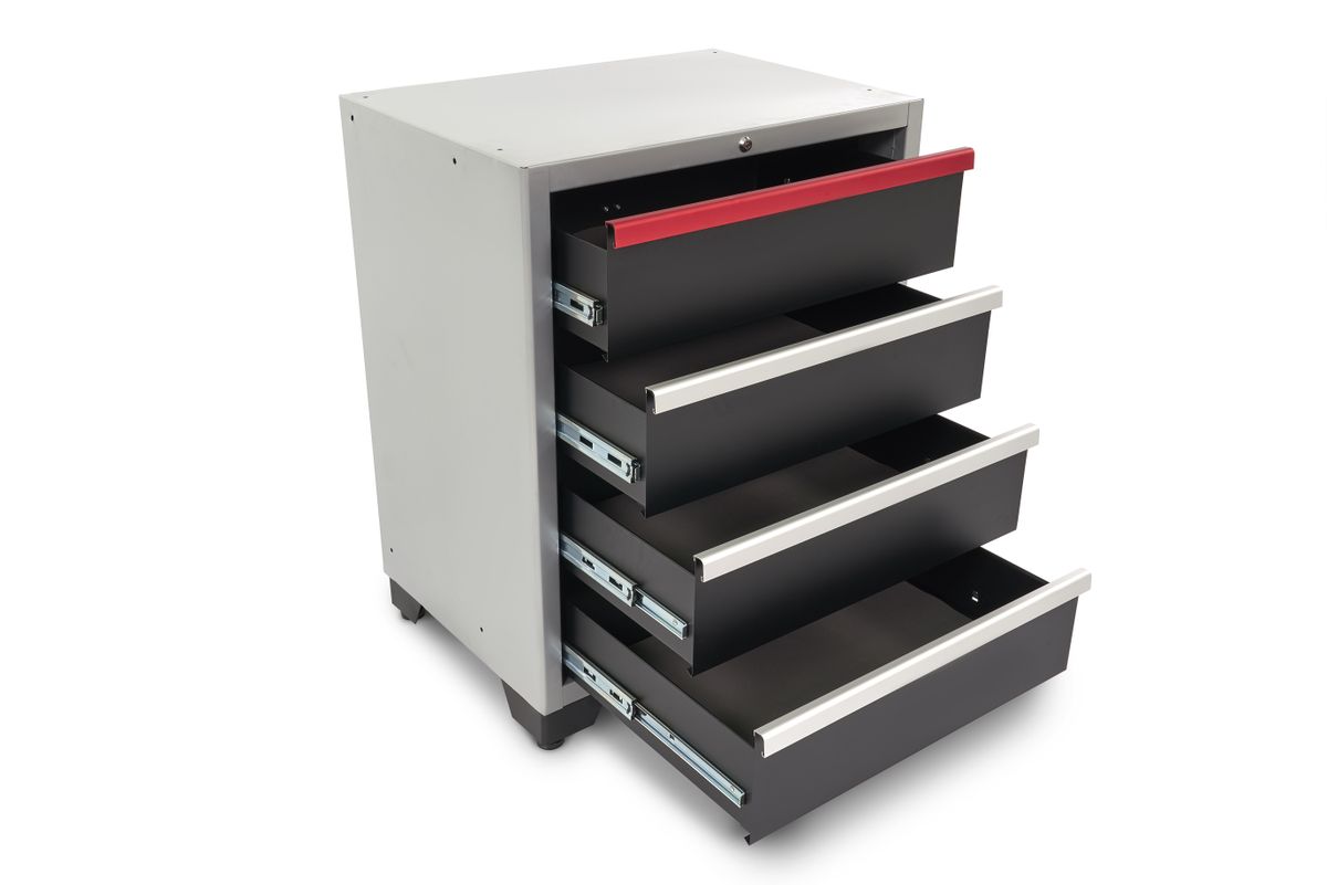 Ontdek de HBM 4 Laden Deluxe Professionele Gereedschapskast, een onmisbare aanwinst voor zowel professionele werkruimtes als hobbyisten. Met deze kast breng je orde in de chaos, en heb je al je apparatuur, losse onderdelen en materialen altijd binnen handbereik.Deze robuuste kast is voorzien van zwarte hamerslag poedercoating, wat niet alleen duurzaamheid garandeert maar ook een strakke uitstraling geeft aan je werkruimte. Dankzij het stevige materiaal kan de kast zelfs zware voorwerpen en gereedschappen dragen, terwijl de vijf royale laden genoeg ruimte bieden voor al je handgereedschap, klein en groot.Je kunt deze professionele gereedschapskast eenvoudig combineren met andere items voor werkplaatsinrichting, waardoor je jouw werkplek naar wens kunt organiseren. De lades zijn 100% uittrekbaar, wat betekent dat je alles gemakkelijk kunt bereiken zonder gedoe.Met buitenafmetingen van 71x51x90 CM en een maximaal totaal laadvermogen van 350 kg, biedt deze kast alles wat je nodig hebt voor een georganiseerde werkplaats. Bovendien zorgen de vier stevige poten voor stabiliteit, zelfs op oneffen ondergronden. Een centraal slot bovenaan de kast houdt je spullen veilig en beschermd.Verander je rommelige werkruimte in een georganiseerde en efficiënte plek met de HBM 5 Laden Deluxe Professionele Gereedschapskast.