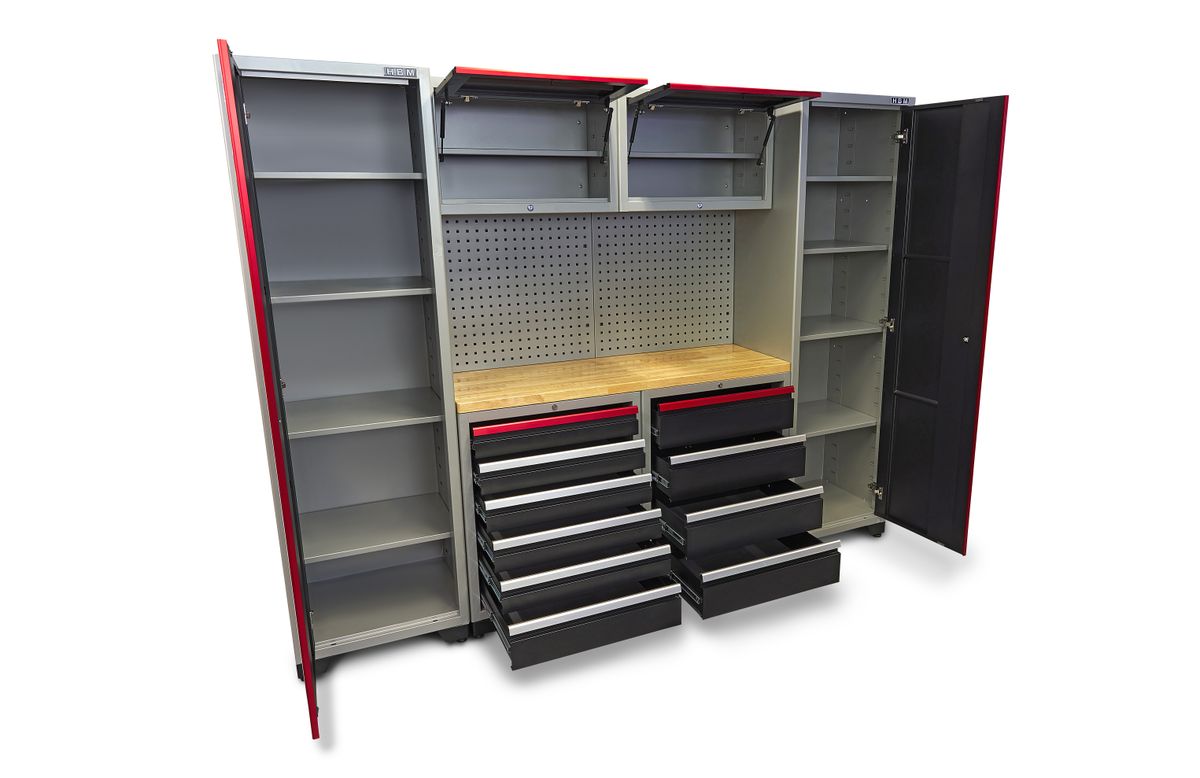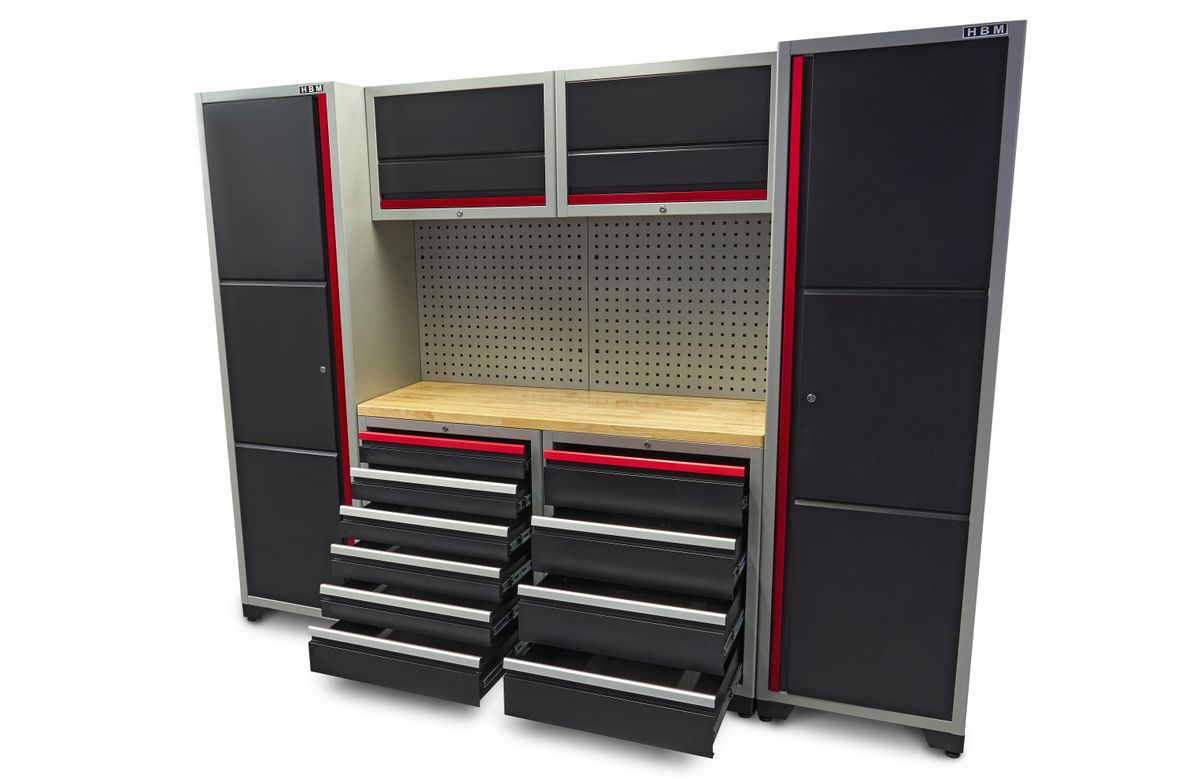 Dit nieuwe modulair systeem van HBM is de ultieme werkplek, en hierdoor verhoogt u de productiviteit en efficiency in uw werkplaats of garage. Modulair werkplaatskast en werkplek systeem is geschikt voor het inrichten van de werkplaats. De laden hebben alle een individuele vergrendeling en zijn centraal afsluitbaar. De werkbladen, gemaakt van berkenhout, hebben een beschermende vernislaag van lijnolie.