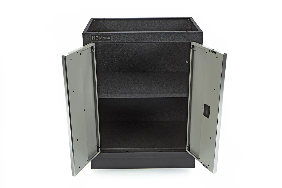 Opbergruimte is in elke werkplaats welkom. Deze compacte en stevige stalen kast is gemaakt van één millimeter dik plaatstaal. De kast is voorzien van een kras en slagvaste afwerking, waardoor je er lang van kunt genieten. De kast wordt afgesloten met twee deuren en kan gebruikt worden met of zonder legbord. Eventueel voeg je aan de kast nog massief houten werkblad met of zonder gereedschapsrek toe. Deze HBM gereedschapskast is geschikt voor het opbergen van elektrisch handgereedschap, werkkleding, of handgereedschappen en onderdelen. De compacte gereedschapskast wordt geleverd zonder bovenblad. Je hebt namelijk meerdere opties om deze kast af te werken.