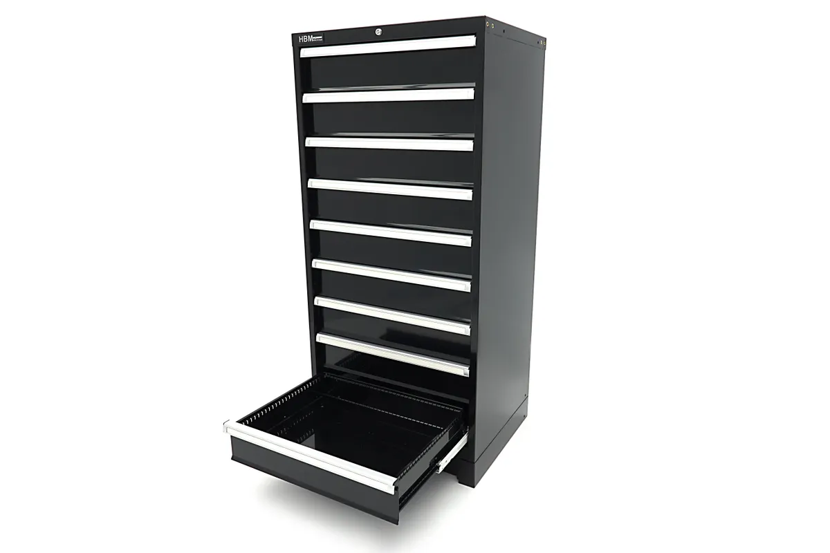 De HBM Pro gereedschapskast met 9 laden is een robuuste en professionele opbergoplossing voor gereedschappen. Deze gereedschapskast is ideaal voor zowel de professionele werkplaats als voor de hobbyist die op zoek is naar een duurzame en georganiseerde manier om zijn of haar gereedschap op te bergen. De negen laden bieden voldoende ruimte voor een breed scala aan gereedschappen en accessoires.