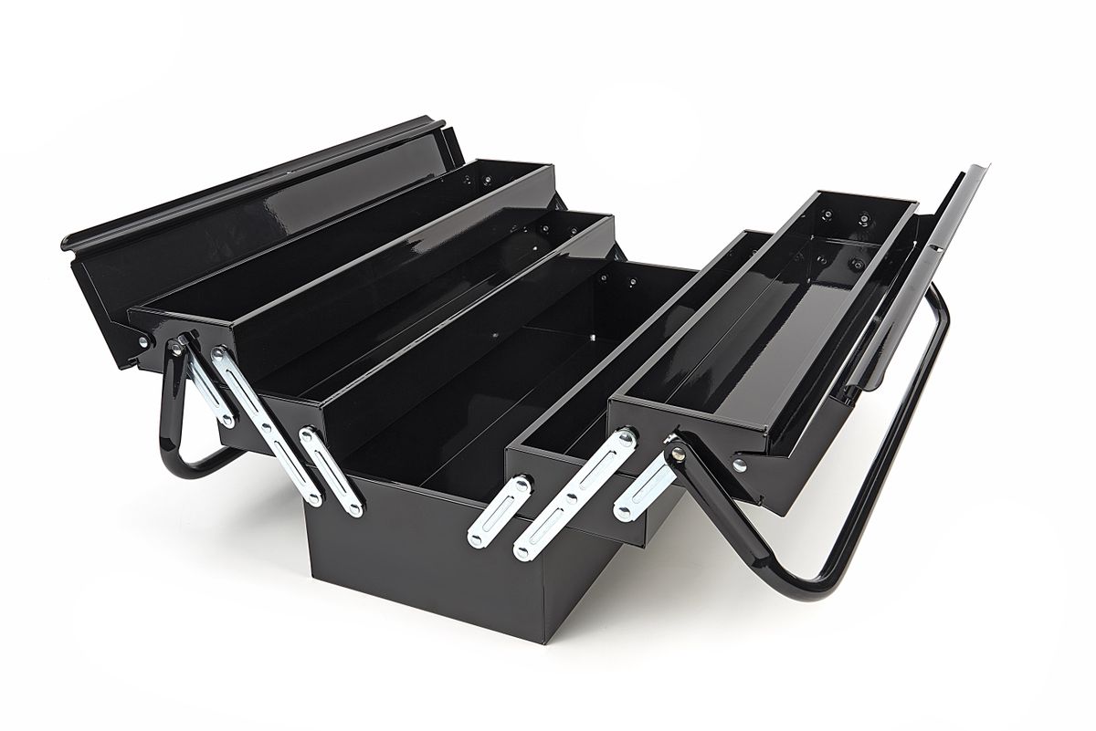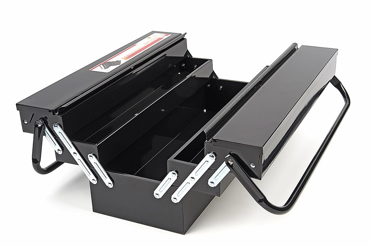 Ben je op zoek naar een goede manier om je gereedschappen op te bergen en mee te nemen? Dan is deze professionele stalen gereedschapskist misschien wel precies wat je zoekt. Hij beschikt over drie lagen en vijf vakken. De gereedschapskist is daarnaast makkelijk uitvouwbaar. Over de professionele, stalen gereedschapskist met drie lagen en vijf vakken van HBM (535 millimeter) Deze prachtige gereedschapskist werkt met een principe waarmee gereedschappen op een uiterst compacte manier worden opgeborgen. De uitgeklapte staat daarentegen presenteert diezelfde gereedschappen op een grandioze manier – klaar voor gebruik. Een ander pluspunt van de gereedschapskist is dat deze eenvoudig van A naar B is te brengen. Hij beschikt over lange, inklapbare handvatten, waardoor het zwaartepunt ook het telpunt is. Je hoeft ook niet bang te zijn dat deze handvatten in uitgeklapte toestand in de weg zitten.