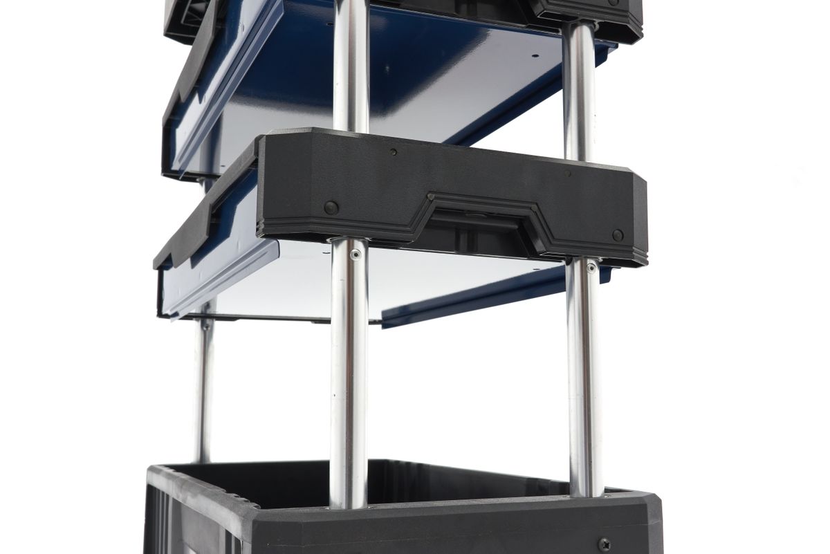 Tijdens het klussen is het belangrijk om snel en eenvoudig bij je spullen te kunnen. Deze transportkar biedt vier ruimtes om gereedschappen of toebehoren te plaatsen en is eenvoudig te verplaatsen. De kar kan met 60 kg bij elkaar een flink gewicht dragen en is opvouwbaar. Zo kun je de kar dus makkelijk meenemen naar andere werplekken. Of je laat deze op je vaste werkplek staan zodat je spullen op kunt bergen en er toch snel bij kunt.
