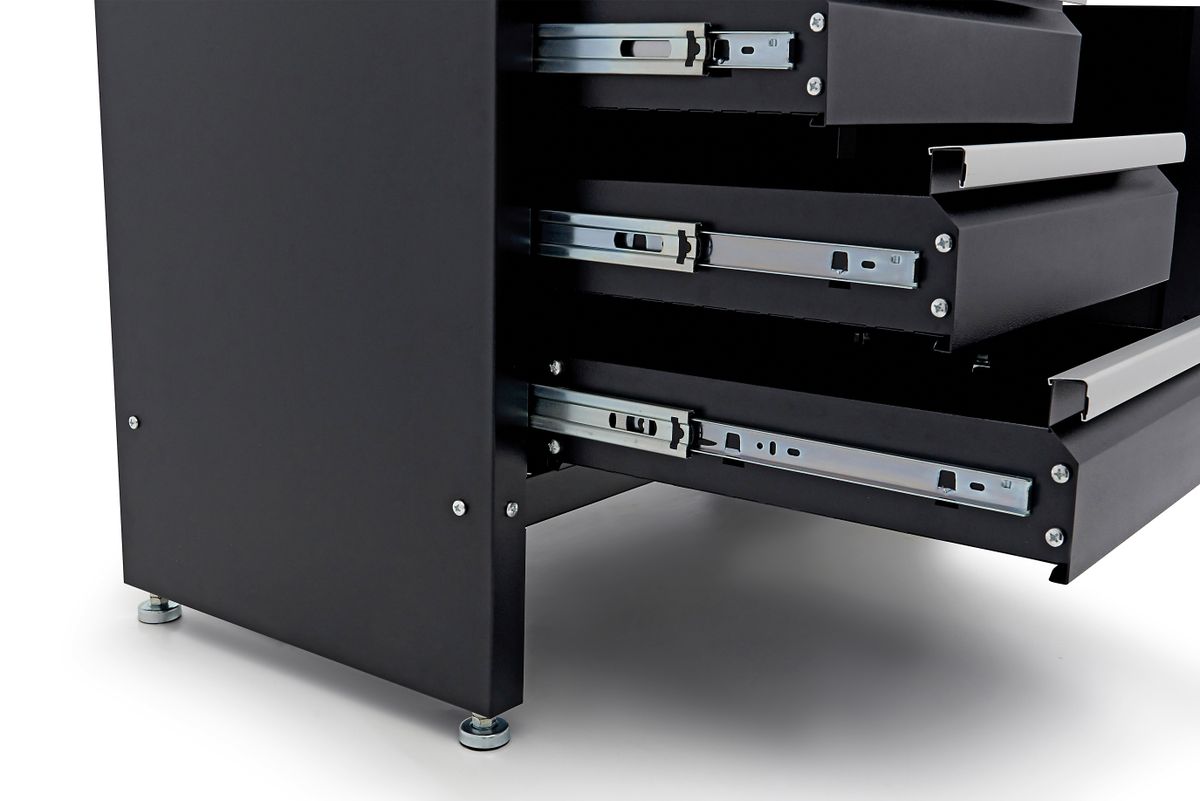 Als je op zoek bent naar een werkbank die flexibiliteit én stevigheid biedt, dan is deze iets voor jou. Het compacte design, de vele opbergruimte en de professionele look maken deze werkbank de perfecte oplossing voor zelfstandige vakmannen én bedrijven die een multifunctionele oplossing zoeken voor het inrichten van de werkruimte. De zwarte, effen afwerking geeft de wagen een professionele, verzorgde look.