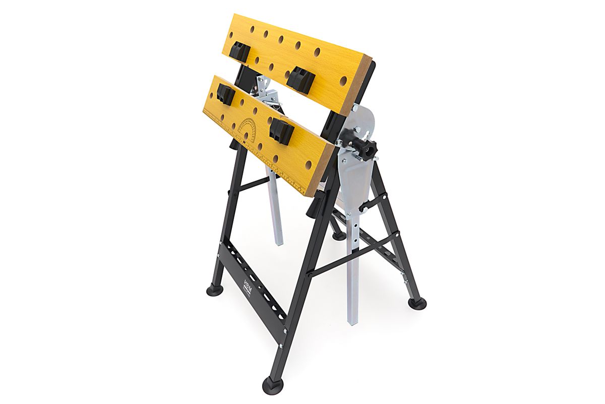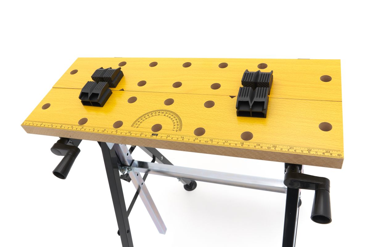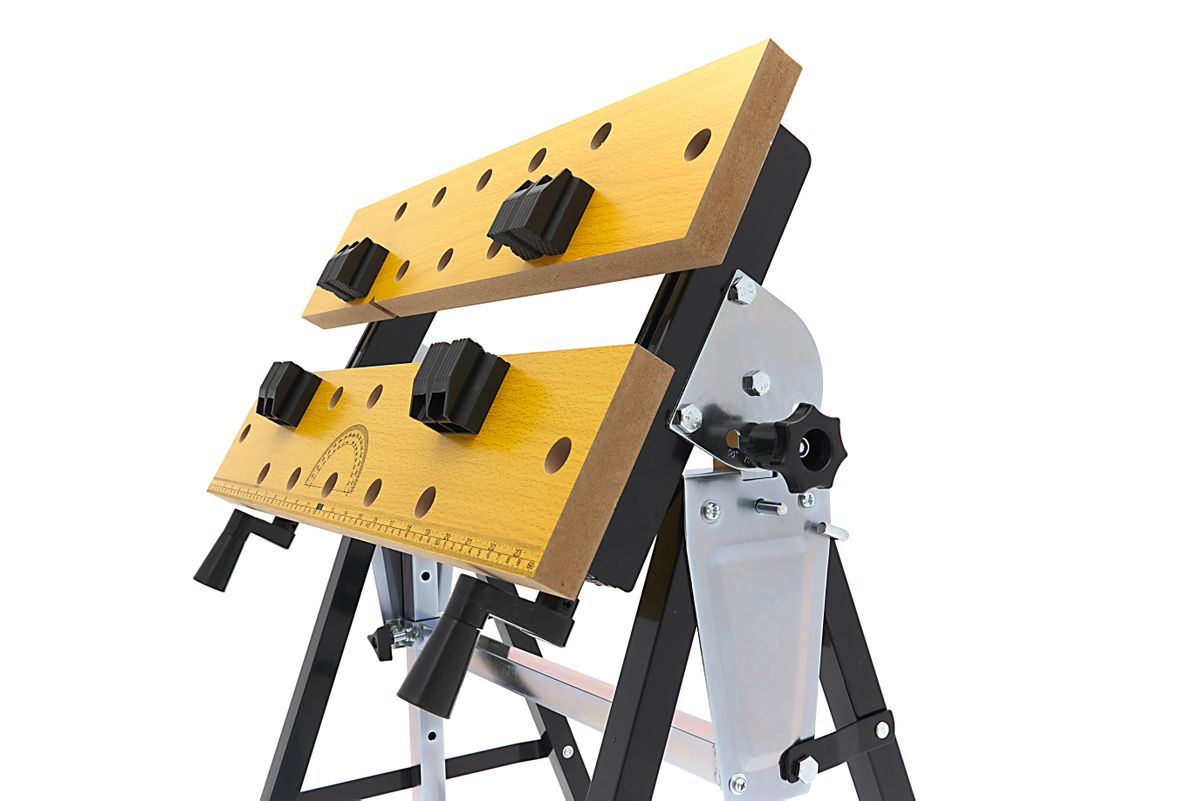 Deze compacte werkbank biedt een slimme oplossing voor elke werkplek. Het werkblad is niet alleen in hoogte verstelbaar, maar ook variabel kantelbaar, waardoor je werkstuk altijd in de ideale positie ligt. Dankzij de dubbele zwengel kun je werkstukken stevig klemmen, terwijl de kunststof spanklauwen flexibel te verplaatsen zijn in het rasterpatroon. De stalen constructie zorgt voor stabiliteit, en het inklapbare ontwerp maakt opbergen of meenemen eenvoudig. Perfect voor zaag-, schuur- en montageklussen waarbij werkhoogte en werkhoek cruciaal zijn.