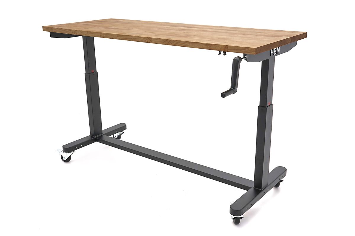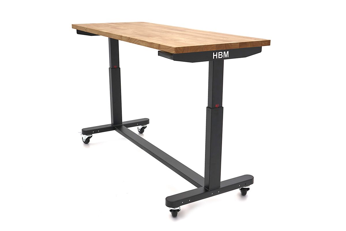 Deze HBM 152 cm in hoogte verstelbare werkbank is verrijdbaar en heeft vier stevige wielen met rem onder het onderstel. Zo vervoer je hem makkelijk naar een andere werkplek maar kan je hem ook vast zetten. Het stevige houten tafelblad en het robuuste onderstel maken deze werkbank van HBM compleet. De werkbank is ruim 1,5 meter lang, zodat je ook grotere werkstukken op deze tafel kunt zetten.