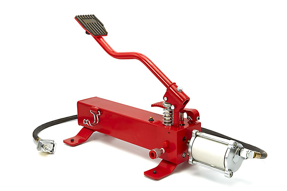 Robuuste hydraulische en pneumatische unit voor bediening van motorheftafels. Deze krik wordt geleverd inclusief ergonomische voetpedalen, pneumatische bediening en bevestigingsgaten en -plaat. Persluchtdruk compressor 5-7 bar. Het olie reservoir heeft een inhoud van 750 ML, en de pomp genereert een druk van ca. 55 Mpa. Het reservoir volume van de pomp is een liter.